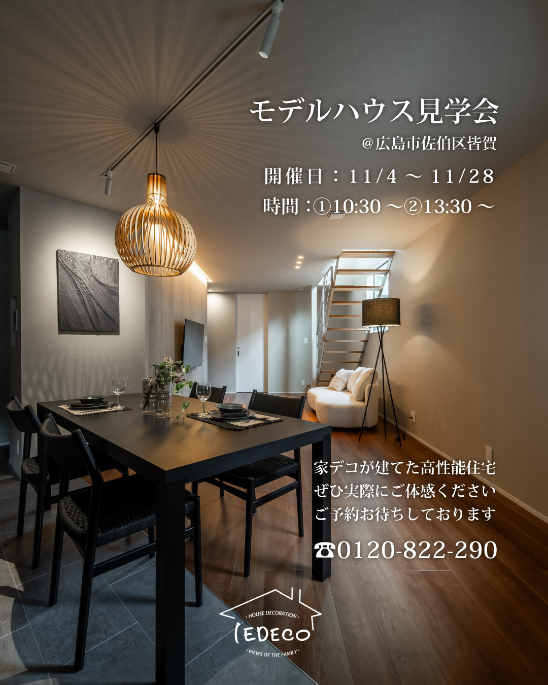 朝晩の気温が下がり、過ごしやすい毎日が続いていますね(^^)動きやすい季節になってきました! 皆様、いかがお過ごしでしょうか? 家デコの10月のスケジュールをご案内します! 家デコでは現在、安芸区船越と佐伯区皆賀で