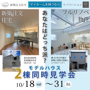 今なら、家デコが建てた新築戸建モデルハウス(2025年8月完成)も築43年の中古戸建をリノベーションしたモデルハウスもどちらもご覧いただけます!